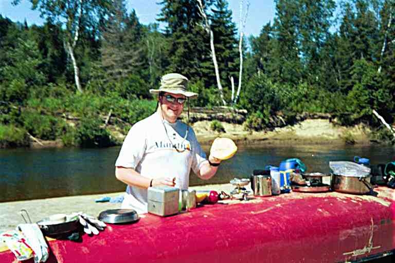 before noon. Here's Jord preparing brekkie on a battered Royalex